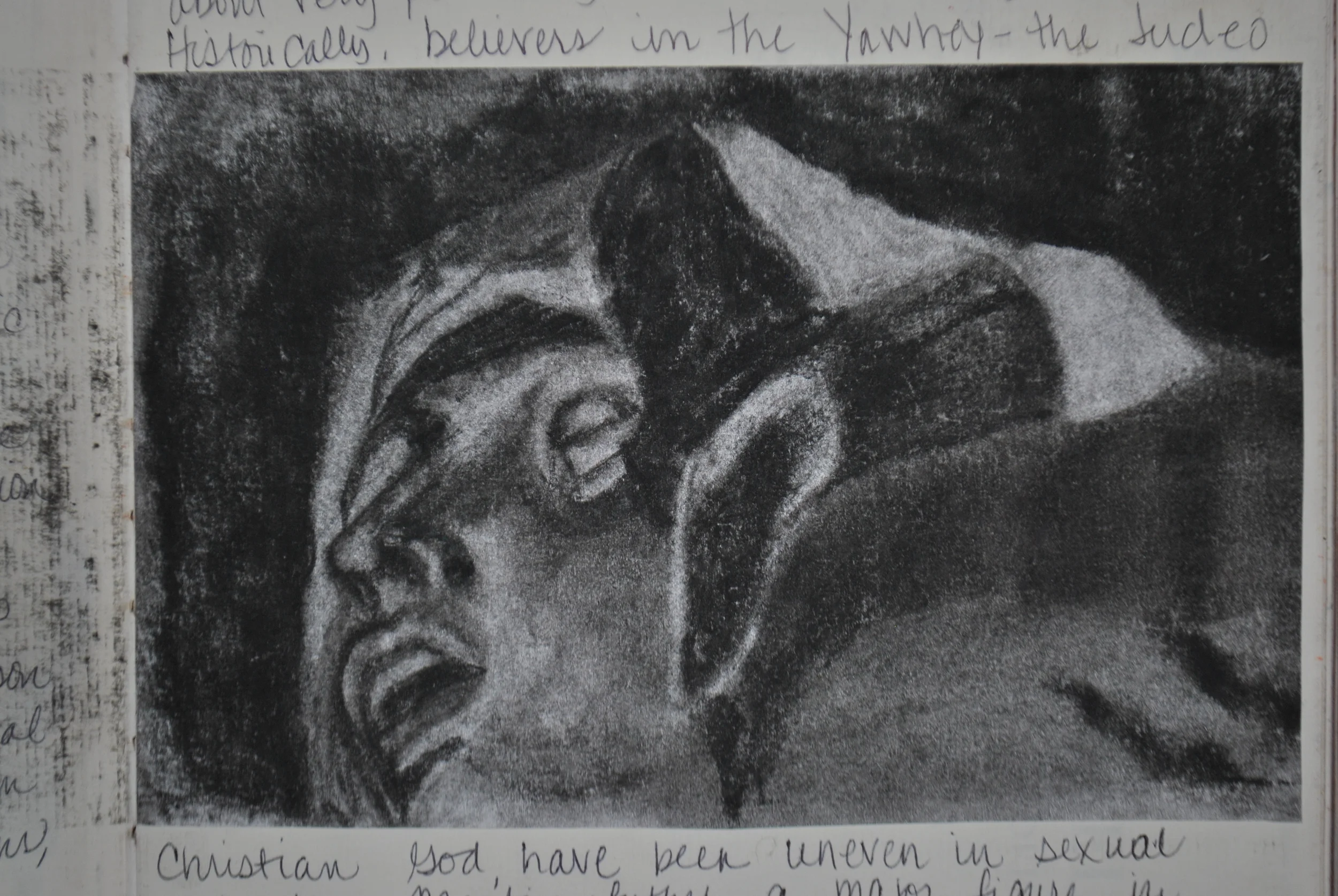 This is a charcoal sketch I made of the Bernini marble sculpture in Rome, Italy entitled, "Ecstacy of St. Teresa". I'm captured, disturbed, confused and fascinated by this saint. I'm not aware of anyone else in history that speaks of Divine relationship in this way. She wrote of her sensual experiences of God and the following is an account that was the inspiration for Bernini's sculpture:
